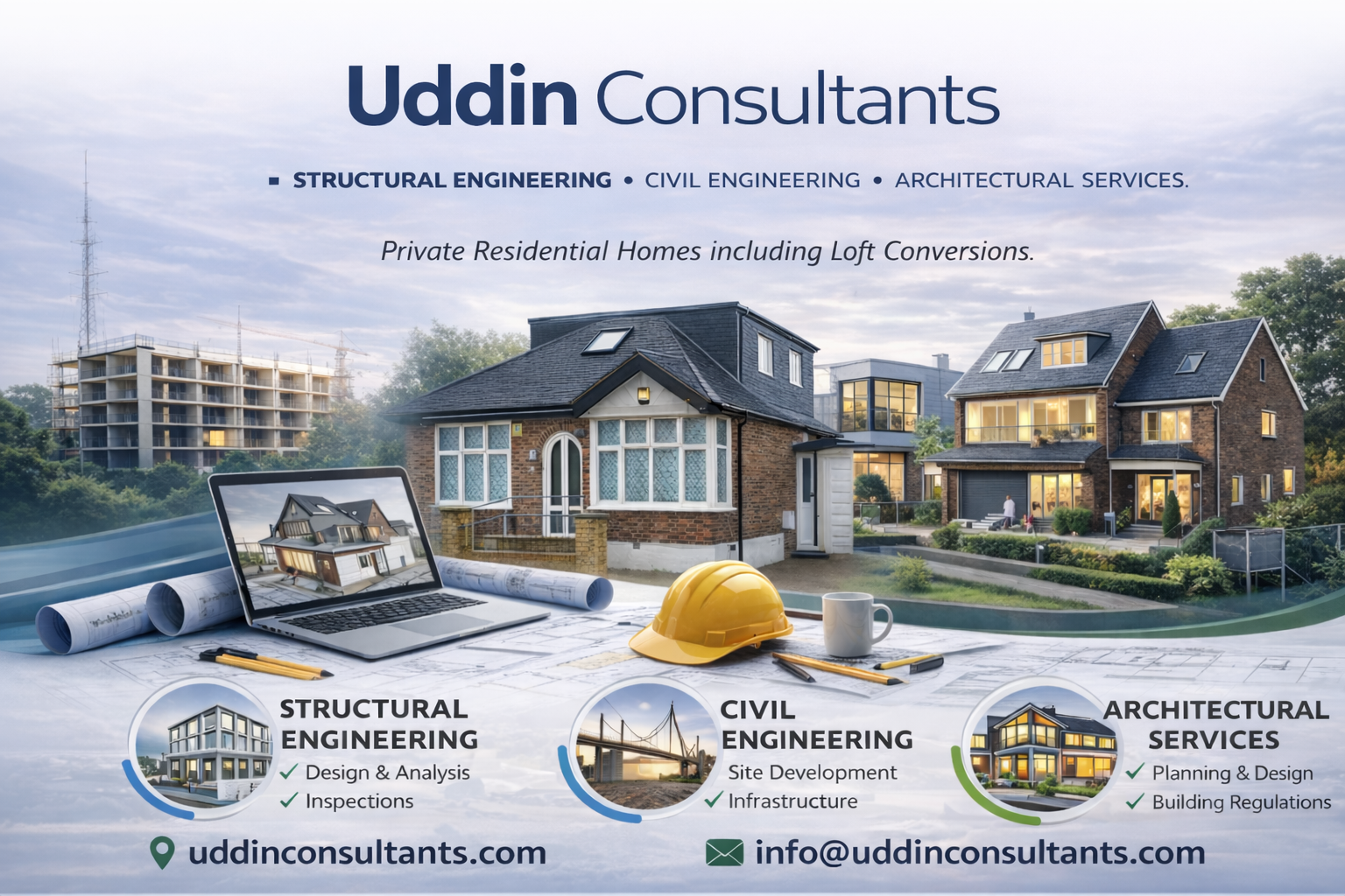 Uddin Consultants is a residential structural engineering consultancy focused on safe, practical design for home projects. We support homeowners with extension calculations, loft conversion structures, steel beam design, and alteration advice, with a clear emphasis on buildability and compliance.